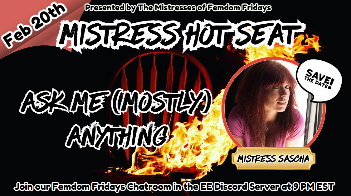This week we’ve got a special guest gracing us with her stimulating presence. The whip smart, sensual Ms. Sascha will be taking a break from her Mistress of The Month duties to offer up her input on this week’s topic before submitting to our Hot Seat. Things will be heating up for the back half of this week’s show as we grill her to perfection! There’s still time to submit your spicy queries here before she provides her revealing responses LIVE on air this Friday in our Discord server at 9pm EST. If you’re struggling with crafting the perfect question for this sensually dominant stunner, consider following her on bluesky or that one hellsite. That way you can get a better idea of the types of things she enjoys discussing. Whatever you decide to do though, make sure you get your questions submitted by Friday’s show.